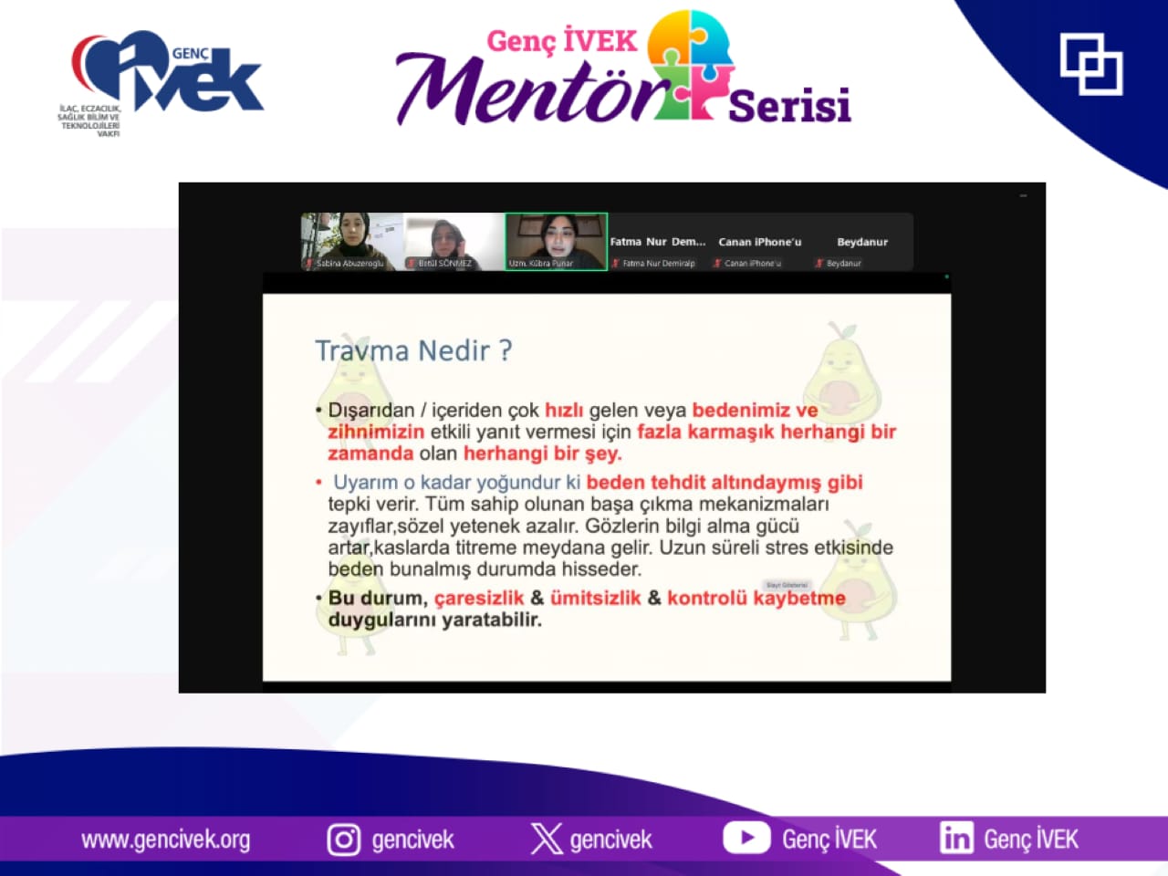 Bu öğretici ve motivasyon dolu buluşma için başta kıymetli hocamız Kübra Punar’a, ardından yoğun ilgi ve katılım gösteren tüm Genç İVEK gönüllülerine gönülden teşekkür ederiz. ?